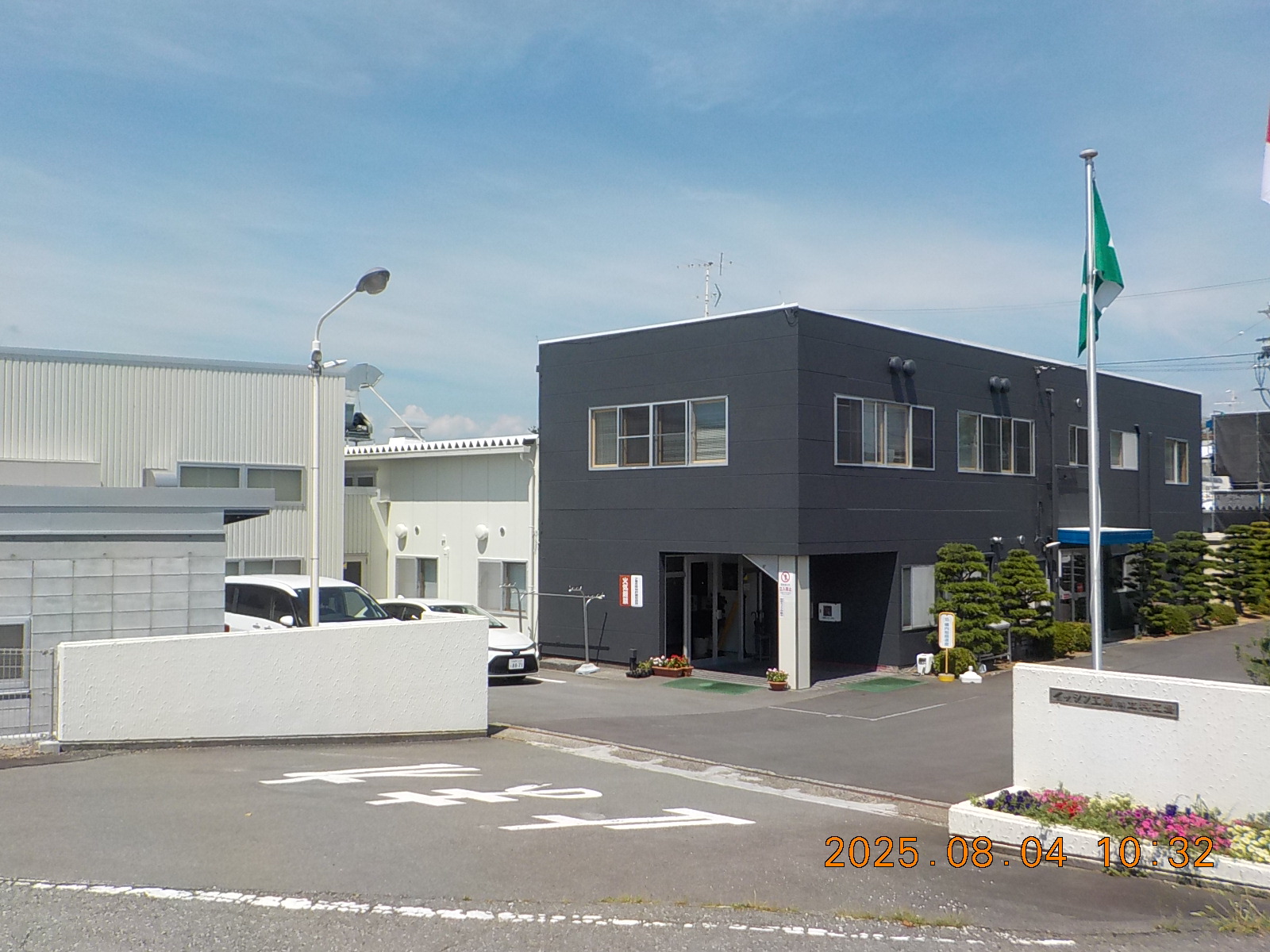 クリーム色に塗られた外壁がいかにも昭和の建物と言った佇まいの厚生棟部分。建設から約40年が経ち、定期的に外壁の塗り直しはしているものの、古めかしさはぬぐえません。黒字(黒地?)が好きな社長の一声で、スタイリッシュな色に塗り替えられました。
